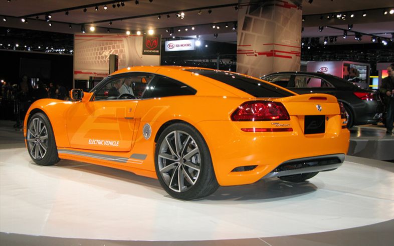 Much like the Tesla Roadster before it, the Dodge Circuit EV is essentially a Lotus with a lithium-ion battery pack and an electric motor. In the case of the Circuit, ENVI engineers started with a Lotus Europa rather than the Lotus Elise-based Tesla, and for Detroit, Chrysler's grafted a signature Dodge crosshair grille onto the car, making it look something like a baby Viper. Nose job complete, the Circuit EV ditched the Bumble Bee yellow-and-black paint job for a fresh coat of "Tangoreen" orange with big EV graphics and new ENVI badges. Inside, the Circuit EV has been redone in black leather with Satin Silver accents and a premium sound system.